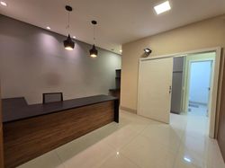 Recepção com mobília completa.