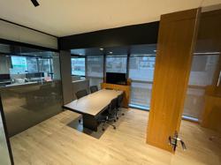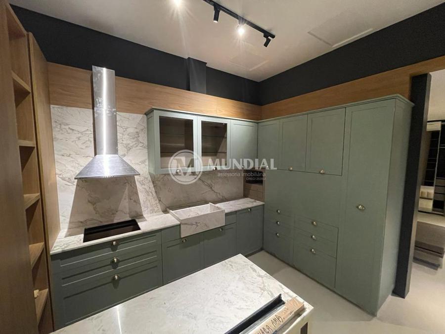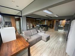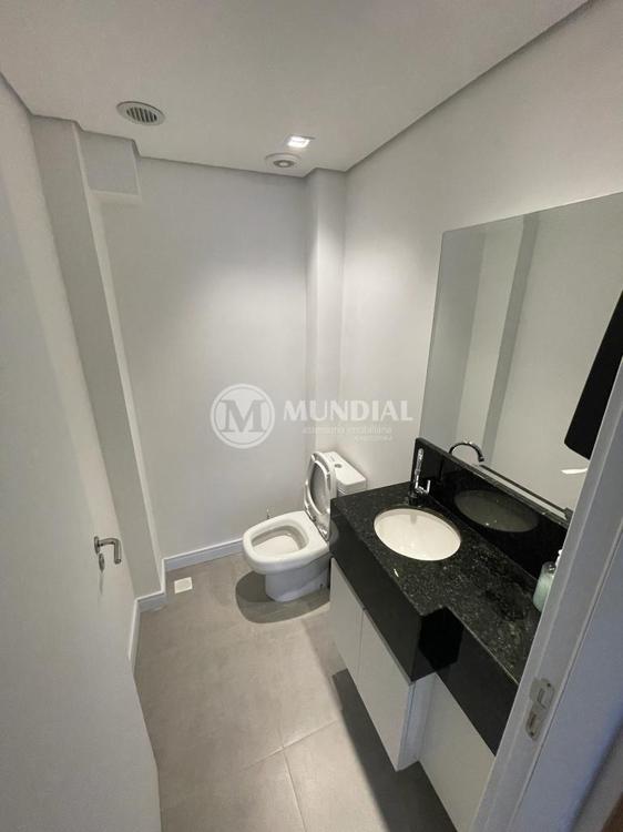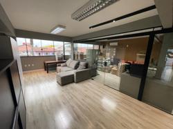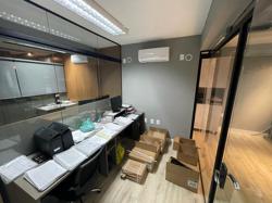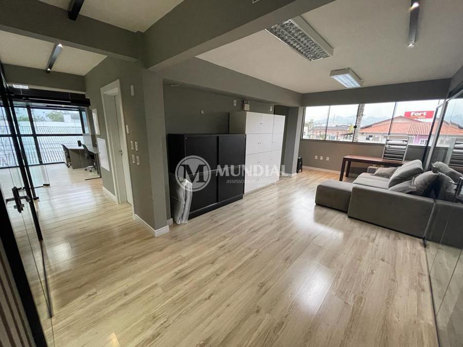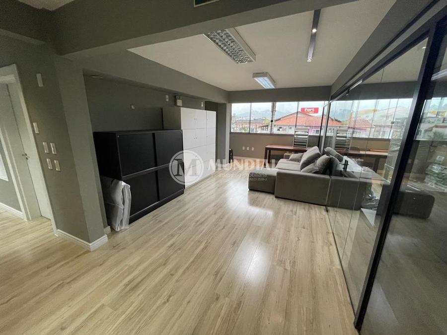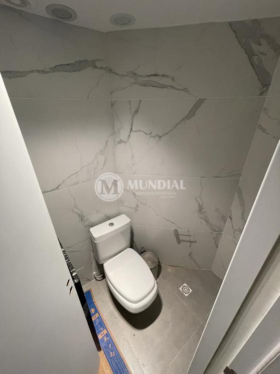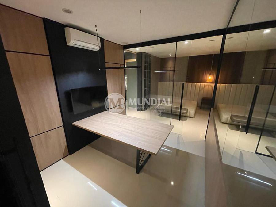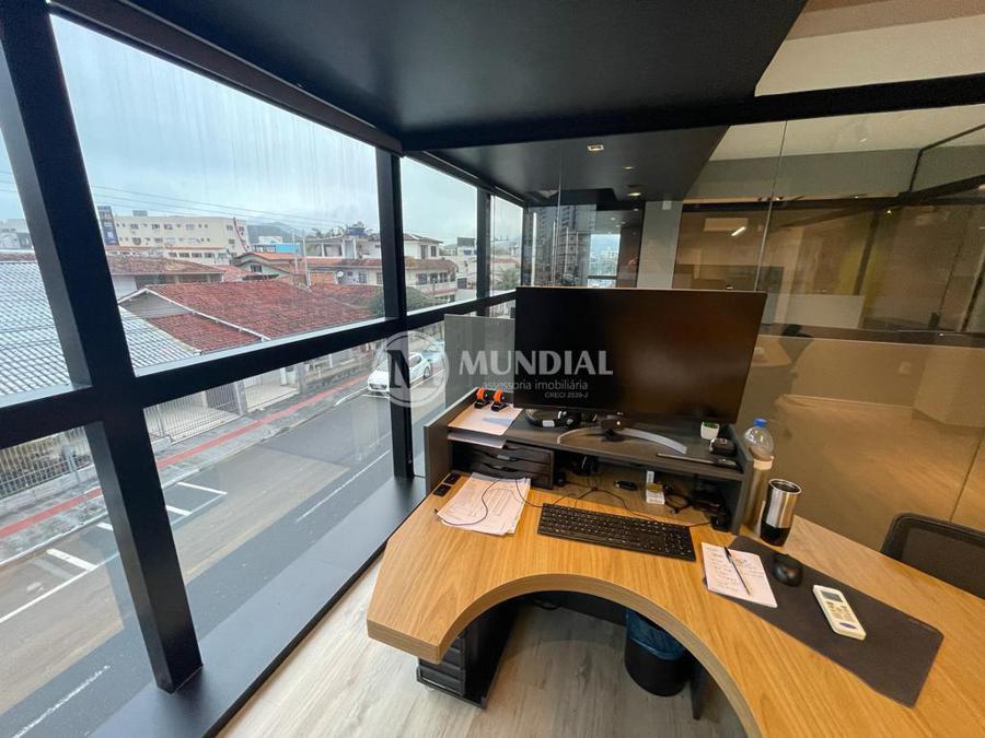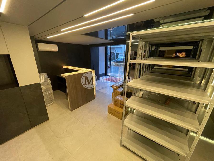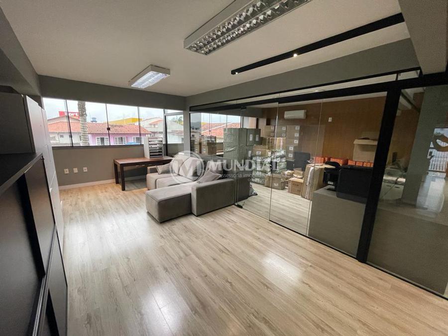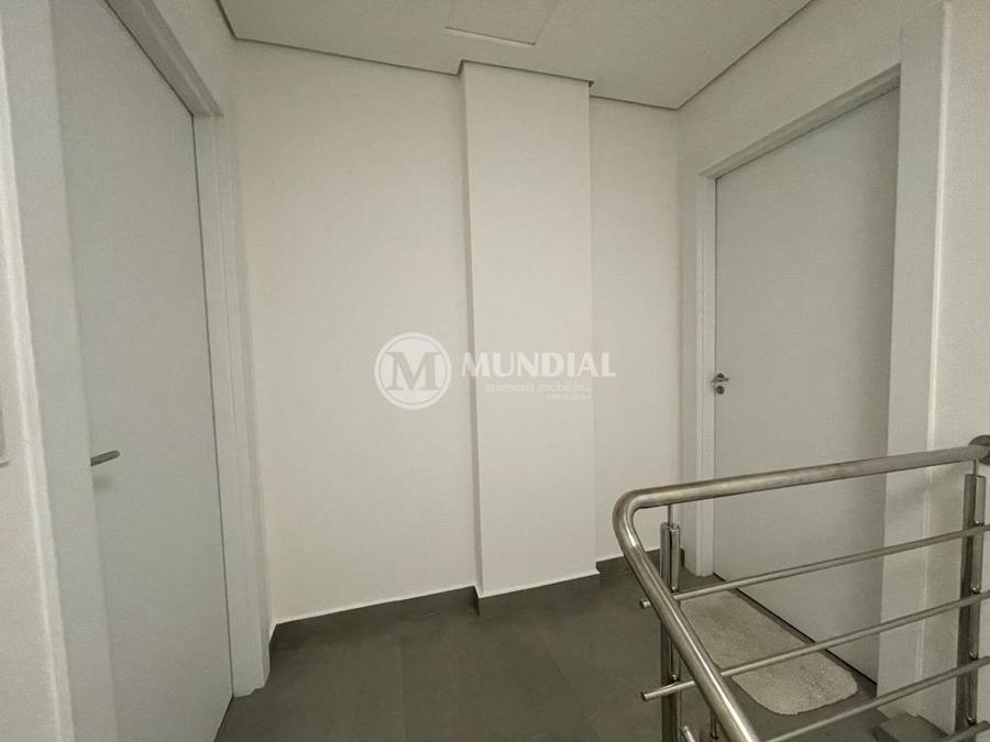 Escritório ? com acesso pela escada comercial e pela escada central (isolada), hoje com divisórias de vidro temperado, vidro refletivo na parte frontal e janelas laterais (muita luz natural), persianas solares, piso laminado e ar condicionado em todas as salas. Na atual configuração temos uma sala de reunião para até 07 pessoas, sala comercial para 05 pessoas, sala diretoria com banheiro privativo, sala secretária para 02 pessoas, sala financeiro para até 03 pessoas com sala de armários, sala fundos para até 05 pessoas, sala lateral para até 11 pessoas, espaço aberto para até 02 salas e 09 pessoas. Total de salas atuais 07 unidades. As divisórias em vidros foram feitas para receber alterações, são coladas na parte inferior com vidros de largura múltipla e com bandeira das vigas até o teto, podendo serem facilmente remanejadas sem perdas. Copa, banheiro masculino e feminino.