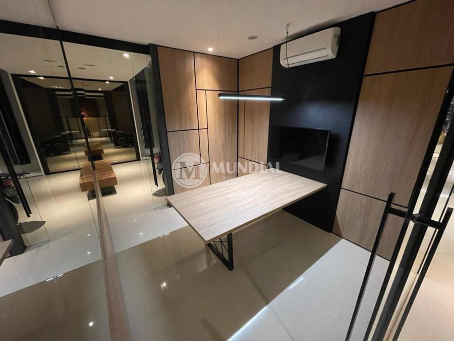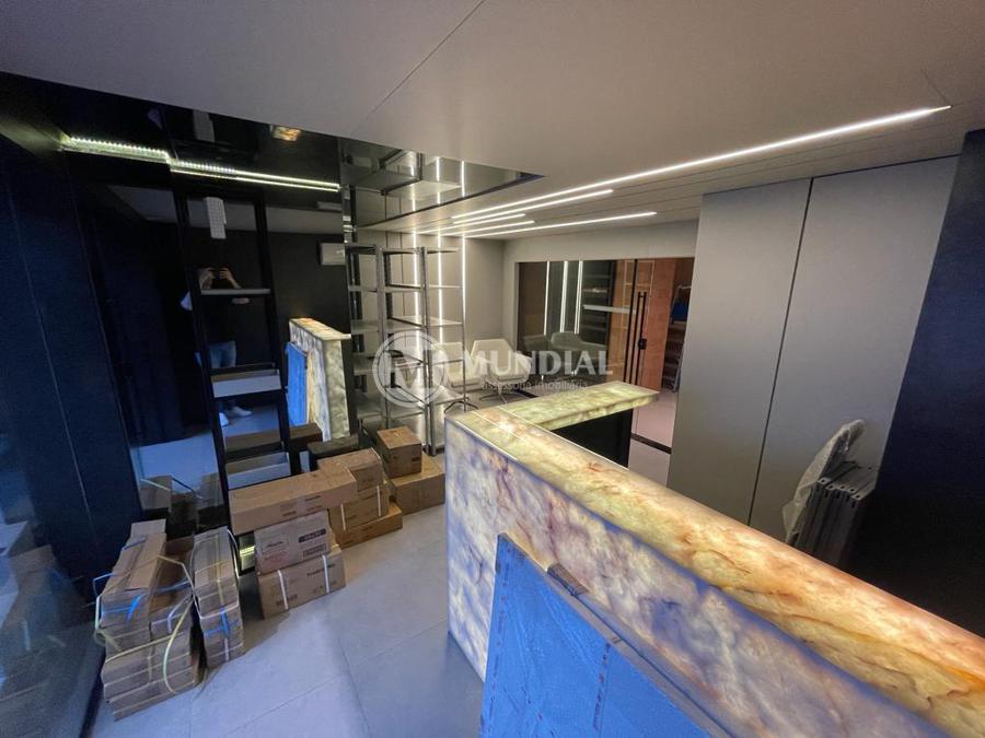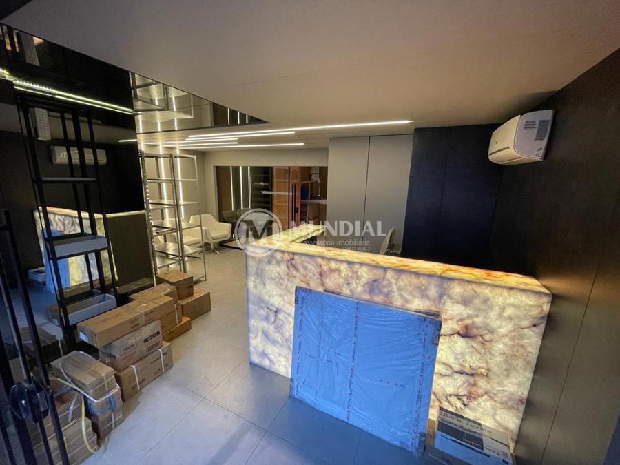 Salão ? com pé direito duplo, piso em porcelanato, com dimensão grande, comportando facilmente 13 a 15 salas, com mais uma sala de espera e mais uma copa. Podem ser adicionados mais máquinas de ar condicionados, inclusive cassete. Há motor dedicado com cano de 200mm para troca de ar.