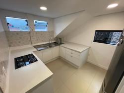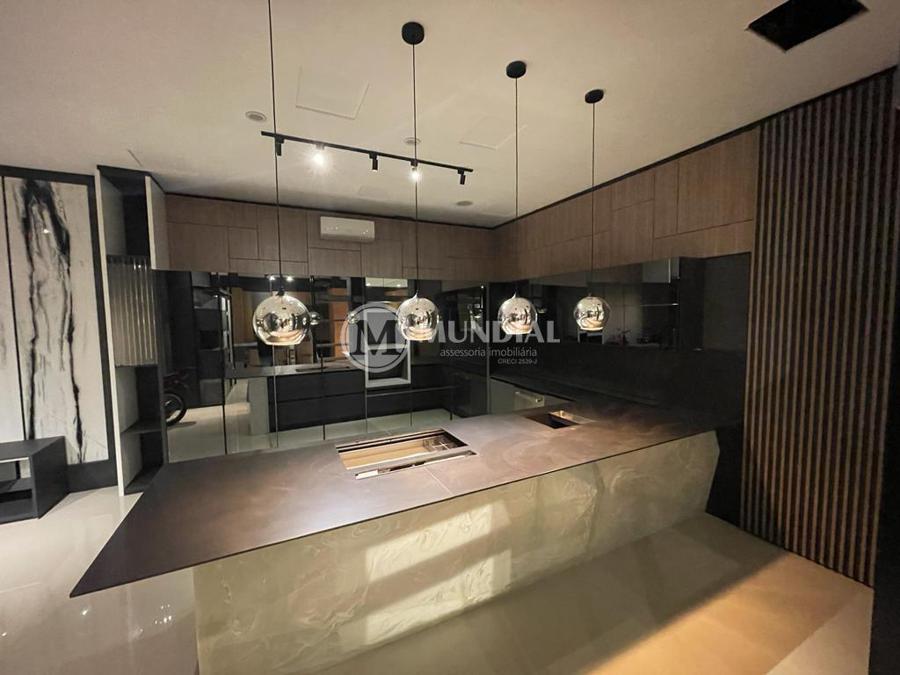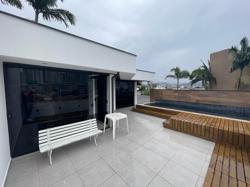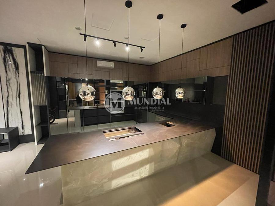 Área de festas ? com cozinha gourmand, espaço para academia, banheiro completo com armário para produtos de limpeza, janelas laterais e portas de vidro para a piscina. Telhado com isolamento térmico.