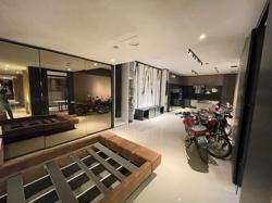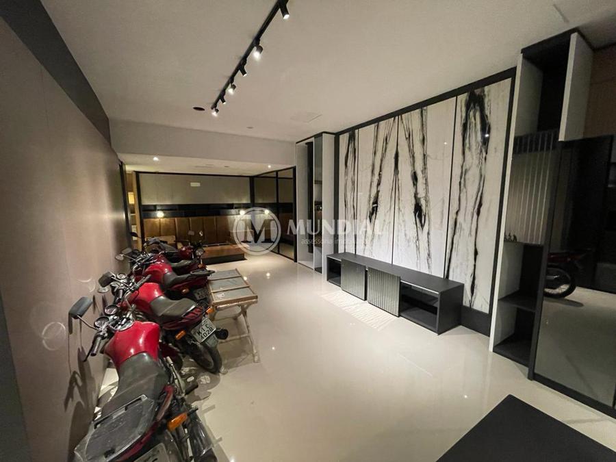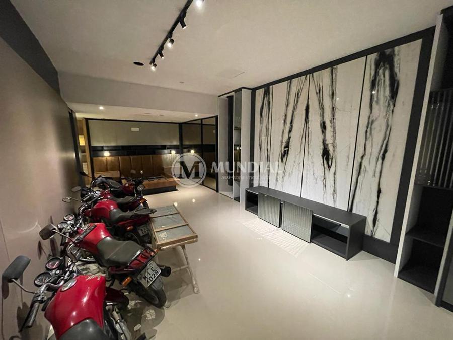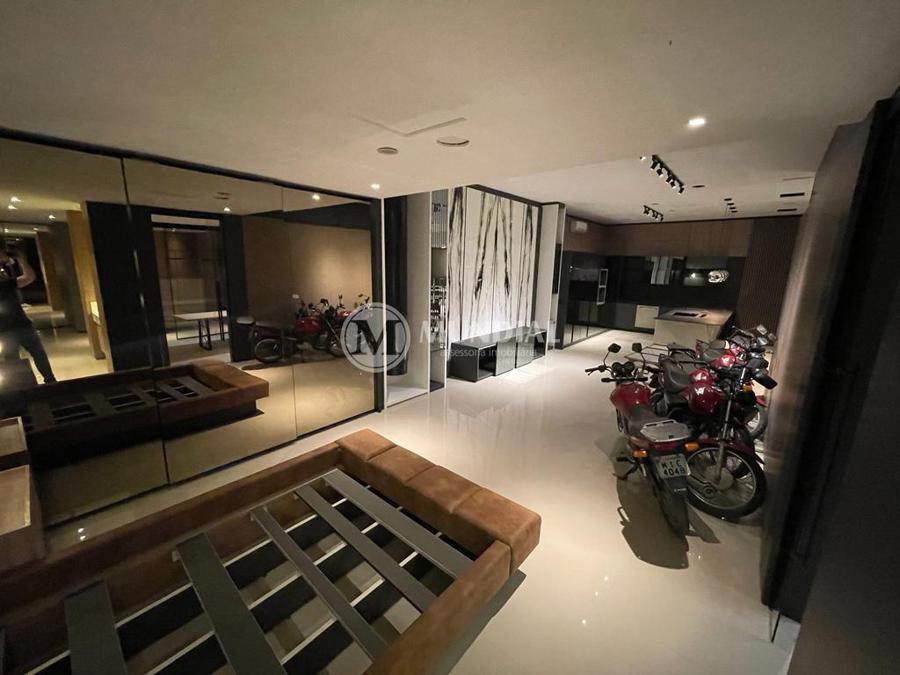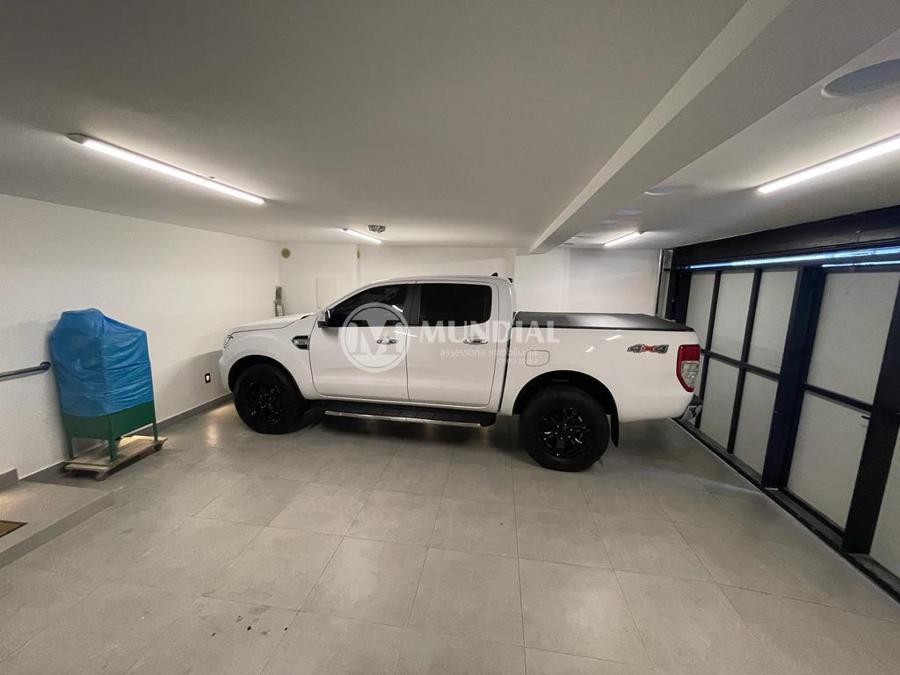 Garagem ? preparada para uma caminhonete cabine dupla e mais um SUV grande, portão duplo de elevação, porta para a rua, porta de acesso para o hall, acesso para a escada central que tem porta para o escritório (isolada) e para cobertura. O acesso para a cobertura é totalmente isolado da parte comercial.