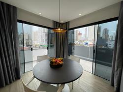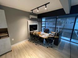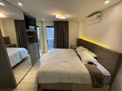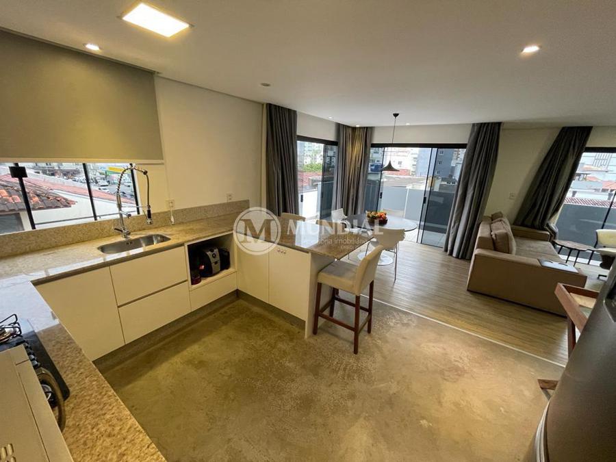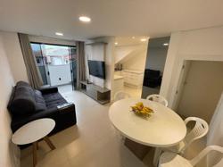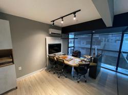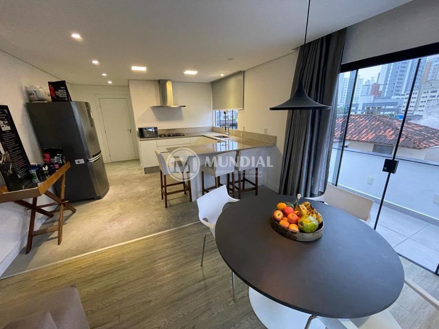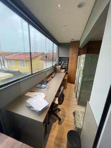 Apartamento ? 60 m² com acesso pela cobertura usando a mesma escada central, sala com sacada, vista sem vizinhos, todos ambientes com janelas, 02 suítes, social com hall privativo , infra para ar condicionado em todos os ambientes. Pode ser revertido para ampliar o escritório.