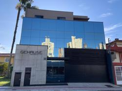 FACHADA: Em vidro refletivo fumê, portão e brise para área técnica em alumínio preto com aparência oculta, porta de entrada com puxador da ZEN. Lixeira grande e espaço para o gás (duas unidades de 45kg). Calçada no padrão da prefeitura muito bem executada.